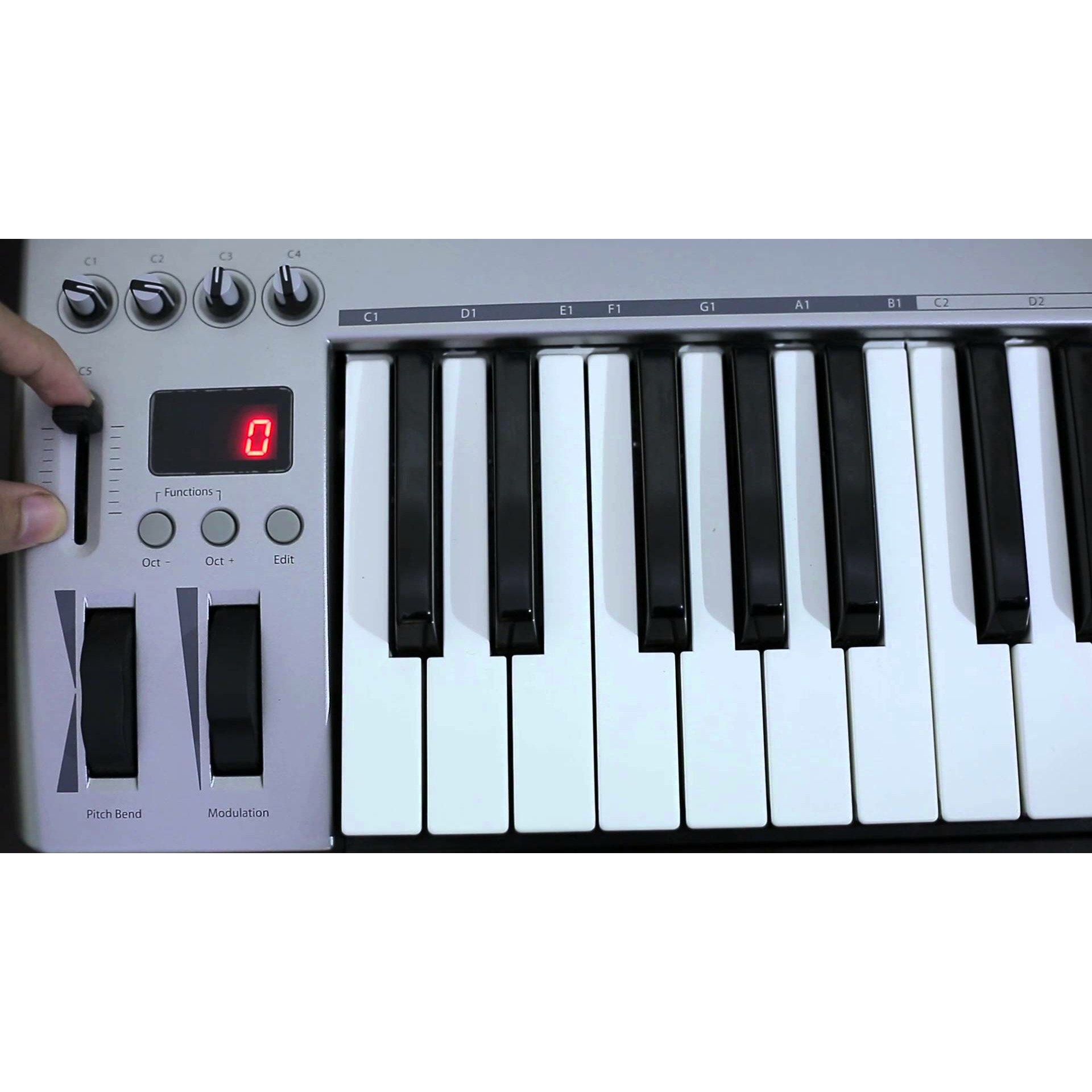 Управлять параметрами микса или инструмента в реальном времени, можно благодаря 4 вращающимся регуляторам и одному фейдеру. Выполненные в профессиональном стиле регуляторы высоты тона и модуляции дополняют арсенал возможностей по работе с артикуляцией. Светодиодный дисплей, состоящий из трех цифр достаточно информативен для навигации в меню и изменения параметров миди-каналов, транспонирования, и т.д. Если вдруг диапазона 49 клавиш не хватает, можно воспользоваться клавишами изменения октавы.
