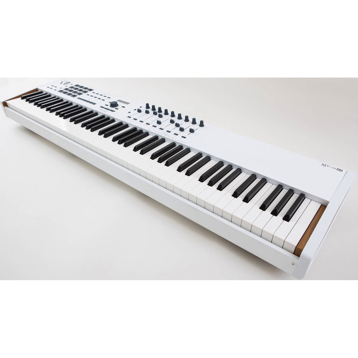С новым поколением KeyLab Arturia подняла планку удобства управления рабочим процессом, эргономики и качества. KeyLab 88 MkII — это идеальный компаньон для требовательных музыкантов с высококачественным молоточковым клавишным механизмом Fatar и продвинутым DAW Command Center. KeyLab 88 MkII дает вам мгновенный доступ к множеству настраиваемых пользовательских мэппингов, так что вы можете использовать ручки, фейдеры и пэды так, как вам нравится. Кроме того, каждый пользователь получит уникальный пакет программного обеспечения, который легко интегрируется с KeyLab 88 MkII. В итоге, контроллер KeyLab 88 MkII — это все то, что привело к успеху KeyLab 88 первого поколения со всеми последними усовершенствованиями новой серии MkII.