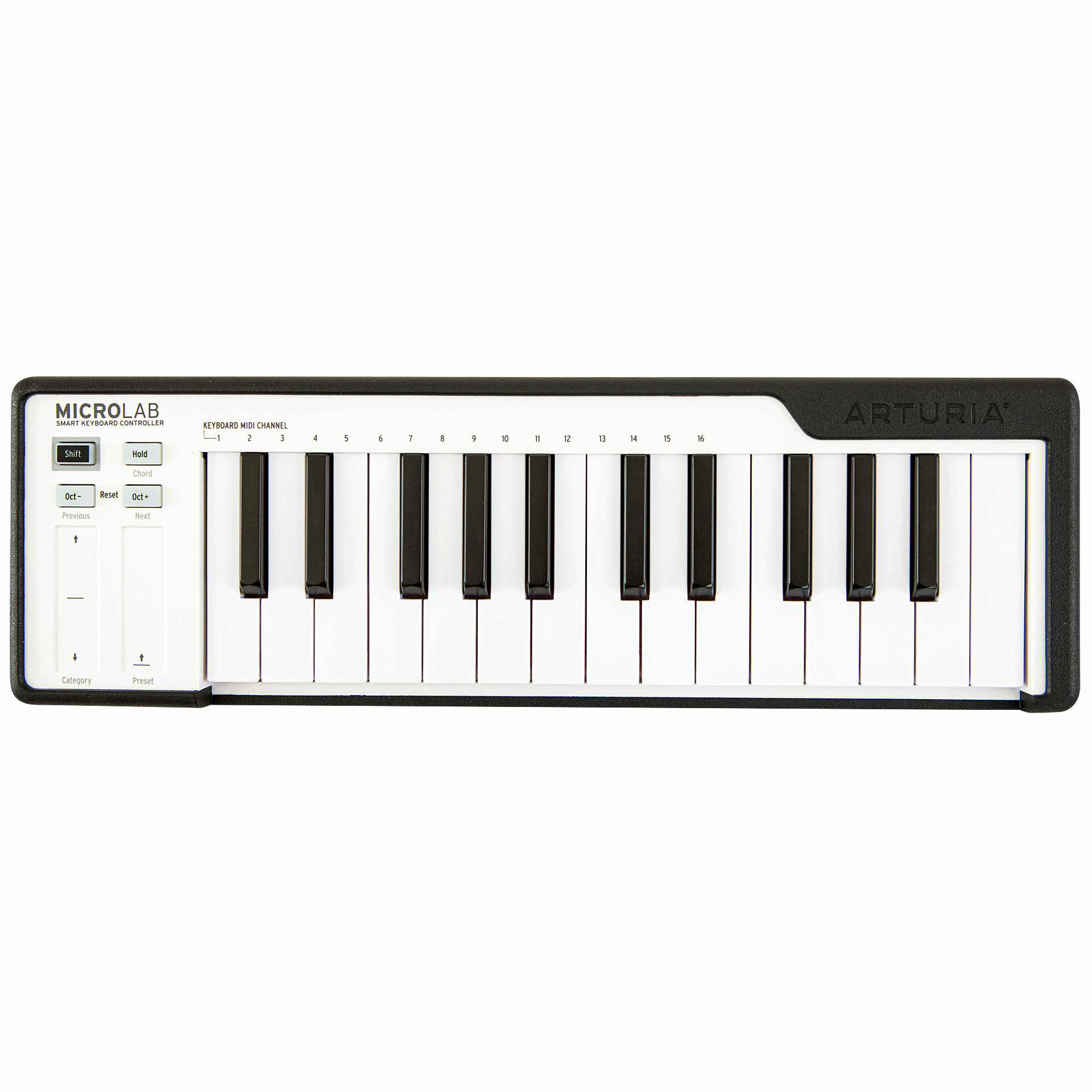 MicroLab – это небольшой, но очень умный 25-клавишный контроллер. Он подойдет тем, кто только начинает заниматься музыкой, понравится гитаристу, которому просто нужно нажать несколько клавиш, чтобы создать аккомпанемент для своей песни, и полупрофессионалу, которому нужен портативный, но качественный клавишный контроллер.