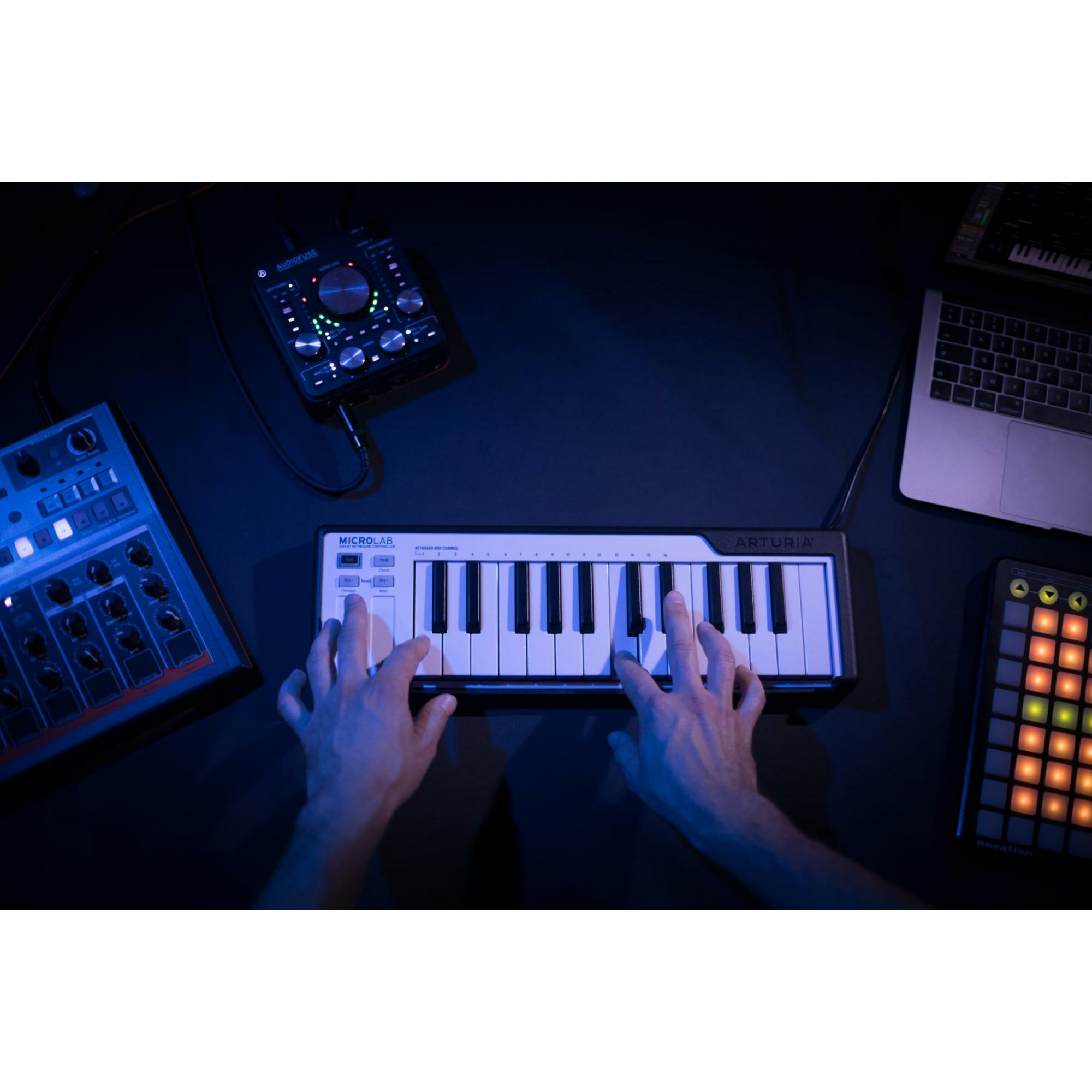 MicroLab включает программное обеспечение Analog Lab Lite, которое поставляется с более чем 600 пресетами из V Collection. Также включены Bitwig 8-TRACK и UVI Grand Piano; не просто удобная и доступная клавиатура, это мега-пакет, который заставит вас создавать музыку! Благодаря впечатляющему успеху Arturia в этой категории (продано более 100 000 контроллеров Slim-KeysTM) нет никаких сомнений в том, что MicroLab быстро станет бестселлером!