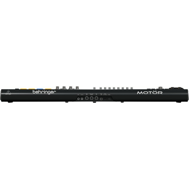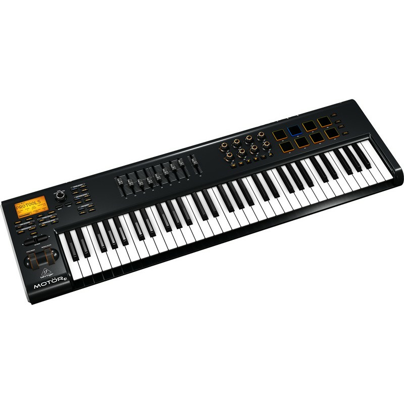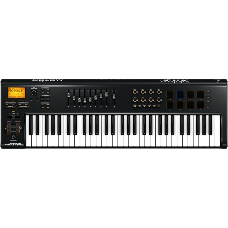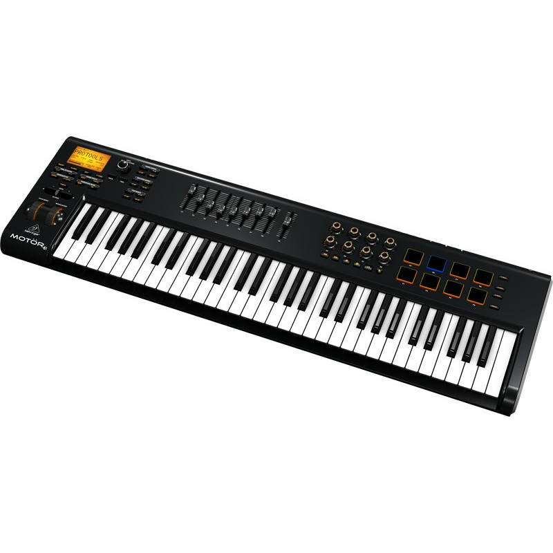 BEHRINGER MOTOR 61 представляет собой MIDI-клавиатуру с 61 клавишей. Клавиатура полуфортепианного типа с эффектом послекасания, что дает возможность точно и динамично исполнять любую музыку. Особенностью этого контроллера является наличие сенсорных моторизованных фейдеров (60 мм.), всего 9 фейдеров. Также есть 8 драм-пэдов со светодиодной подсветкой, которые чувствительны к скорости и силе нажатия. Кроме стандартного MIDI, реализована поддержка протокола Mackie Control. Для быстрого и легкого редактирования контроллер приятно порадует наличием большого, жидкокристаллического экрана, ультра-точными, поворотными энкодерами со светодиодной подсветкой в виде кольца. Подключение контроллера можно производить через USB порт или MIDI In/Out/Thru. Контроллер совместим с Mac OS и Windows.