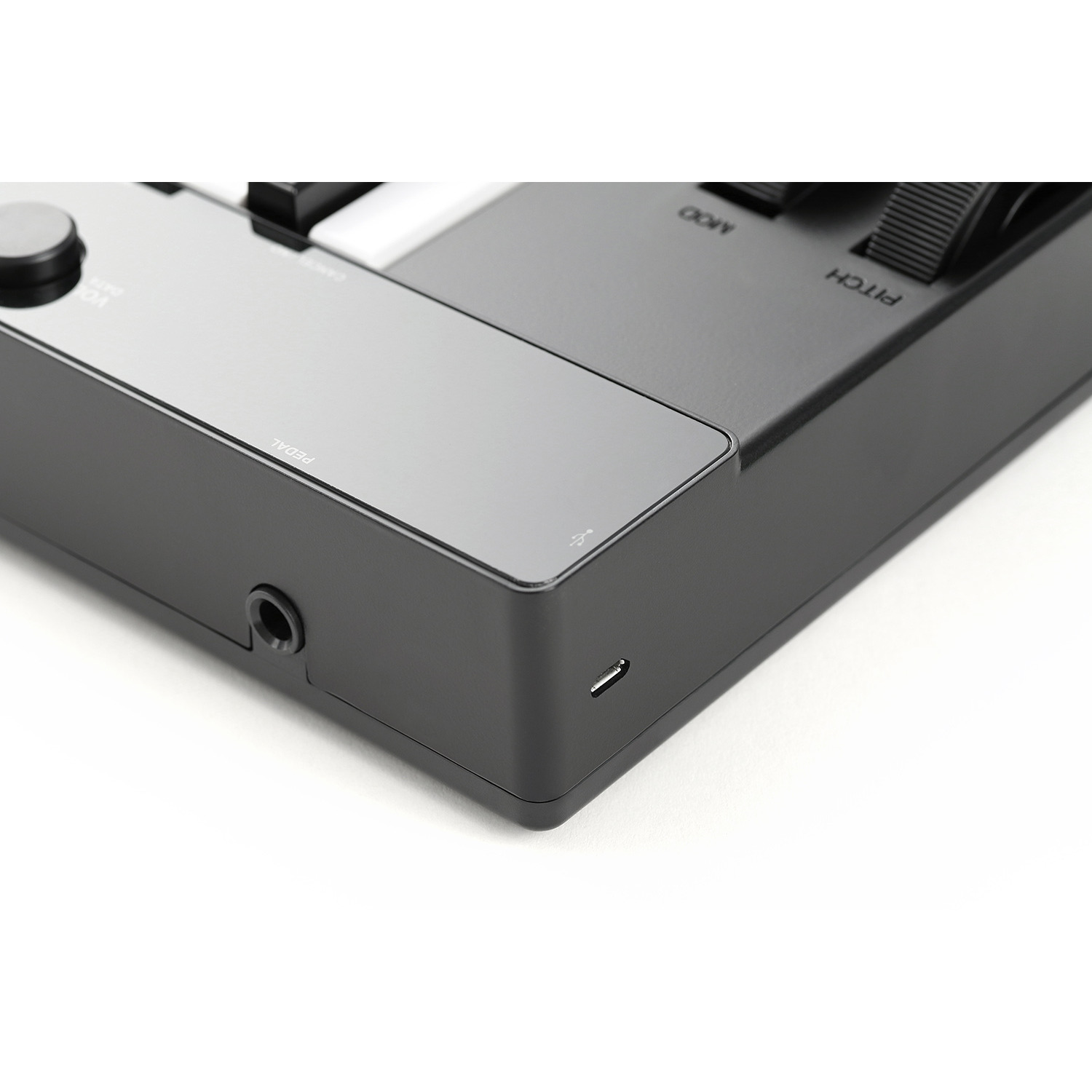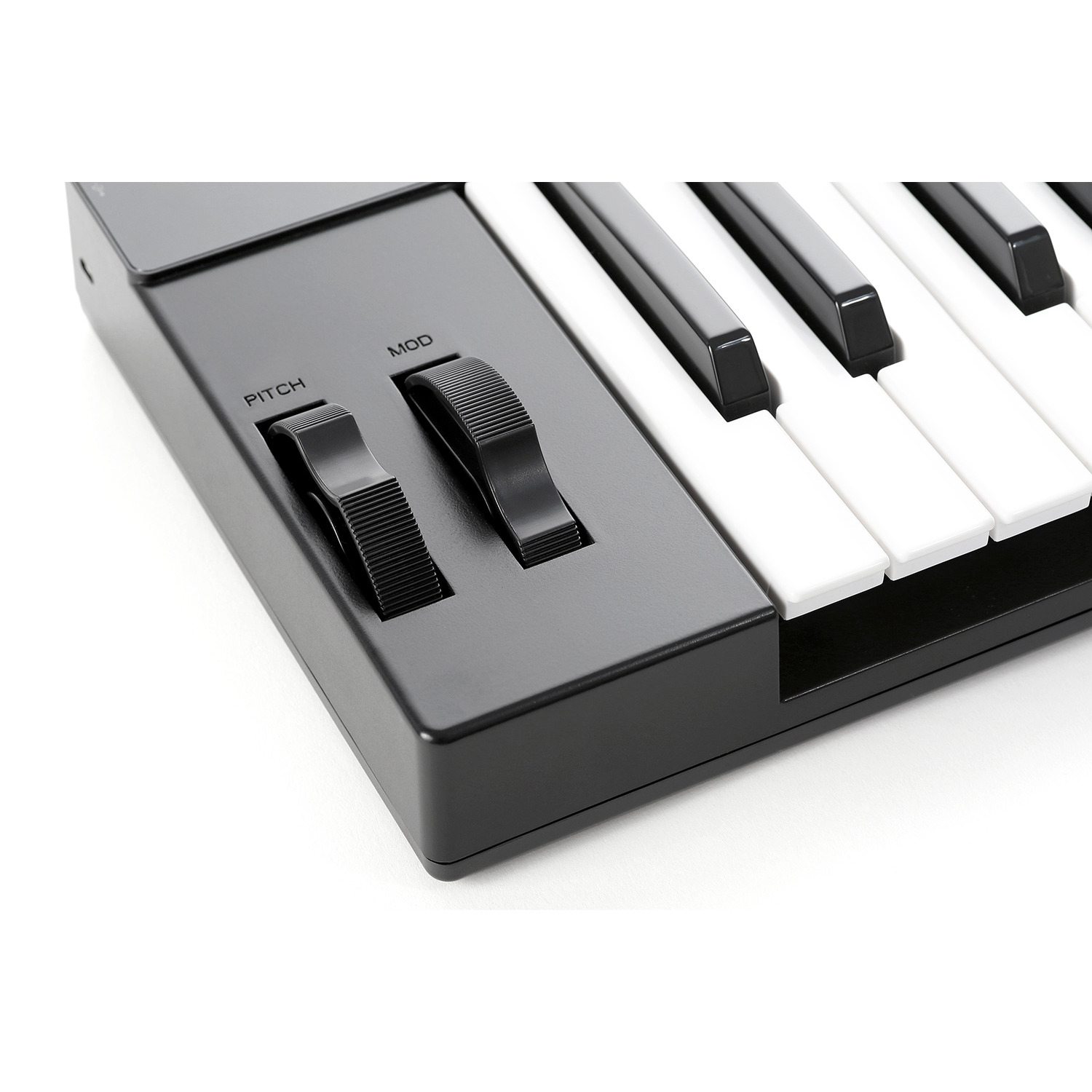 Из органов управления младшая модель iRig Keys 25 имеет только регулятор “Volume/Data” (назначаемый) плюс две кнопки с подсветкой для переключения октав. Старшие же модели получили ещё и колёса Pitch Bend и Modulation, а также три дополнительные кнопки. Кроме того, iRig Keys 37 и iRig Keys 37 Pro оснащены гнездом для подключения педали сустейна или экспрессии.