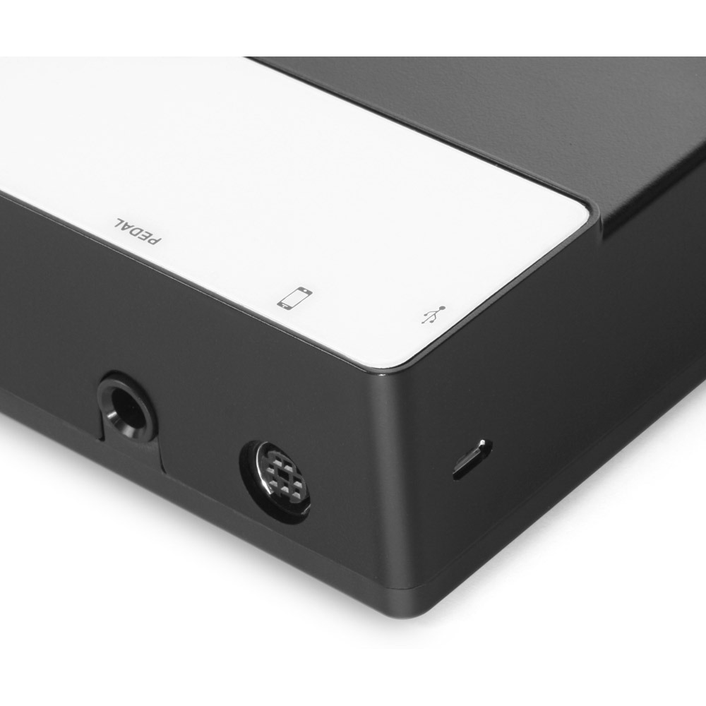 Стандартных MIDI входов и выходов здесь нет. Хотя клавиатура успешно питается от шины USB или от мобильного устройства, можно подключить одновременно и iPad, и блок питания через стандартный USB разъём. Так экономится заряд iOS-устройства во время длительной работы без питания, но аккумулятор мобильного устройства не подзаряжается.