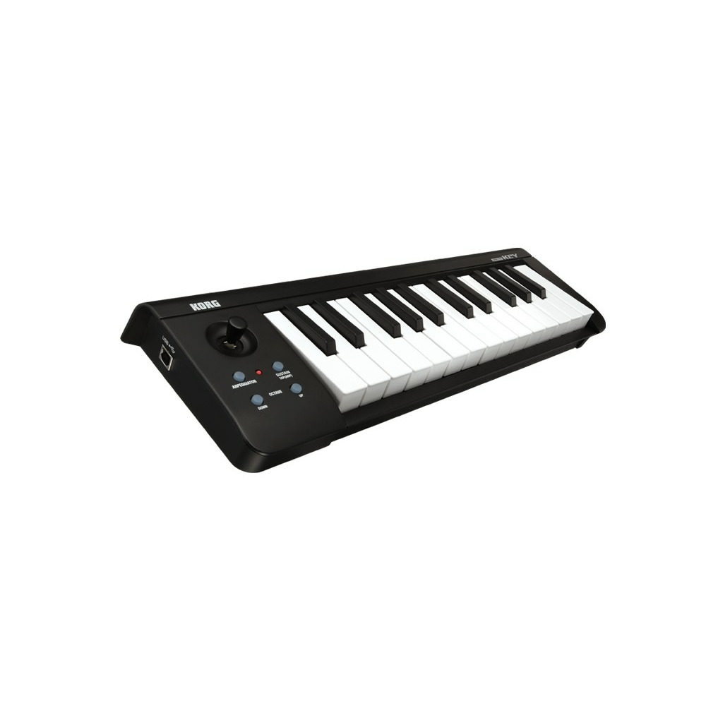 KORG MICROKEY2-25 BLUETOOTH MIDI KEYBOARD – компактная беспроводная MIDI клавиатура, популярная модель от известного производителя, простая и удобная в использовании, обладающая широкими возможностями. Это модель из второго поколения линейки microKEY, которая сохранила все достоинства предшествующих моделей и получила ряд новых современных функций, в том числе возможность беспроводного соединения, поддержку iPad и iPhone. KORG MICROKEY2-25 Air - универсальная модель, которая отличается простотой конструкции, маленькими размером и весом, удобством коммутации. Это младшая модель линейки с 25-клавишной мини-клавиатурой. Подключение осуществляется по Bluetooth или через разъем USB. Клавиатура совместима с компьютерами под управлением Windows и Mac OS. Электропитание клавиатуры осуществляется от двух батарей типа АА или через кабель USB. Примерный срок работы от батарей – 30 часов. К этой модели нельзя подключать педали, но имеется специальная кнопка, которая выступает в роли демпферной педали. Для настройки параметров звучания, в том числе использования арпеджиатора, используется специальный джойстик. Размеры клавиатуры всего 39,5 см х 13,1 см, высота – 5,2 см. Вес – 670 г. Эту миниатюрную модель удобно перевозить, её можно брать с собой в поездки и путешествия. В комплекте с клавиатурой поставляется большой набор программного обеспечения для работы с аудио материалом - как ПО для компьютера, так и приложения для мобильных устройств: KORG Gadget Le и KORG Module Le.