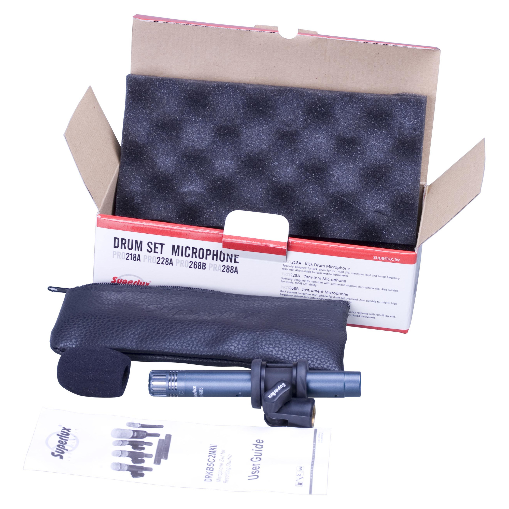 SUPERLUX PRO-268B - микрофон для тарелок, струнных, духовых. Подходит для приборов средней и высокой частоты. Он также имеет взаимозаменяемый дизайн капсул. При всех возможных вариантах на рынке сегодня, выбор конкретной модели микрофона с оптимальным соотношением цена/качество может стать трудной задачей. К счастью, технологии и производство довольно далеко продвинулись за последние пару десятилетий, и меньшая цифра на ценнике уже однозначно не говорит о проигрыше в звучании. И наоборот, высокая цена оборудования вовсе не гарантирует, что оно будет лучшим выбором для ваших задач. Логично, что для большинства из нас самое главное – это найти то, что соответствует потребностям и вписывается в бюджет. Руководствуясь таким подходом, мы устроили демонстрацию высококачественных и при этом доступных по цене микрофонов от компании Superlux. Все модели произведены в Китае.