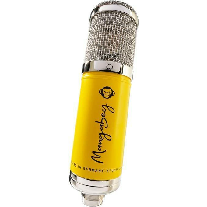 Monkey Banana Mangabey banana– ламповый конденсаторный студийный микрофон с большой мембраной, предназначенный для студийной записи вокала или гитары. Также подойдет для подкастинга и мобильной записи. Используемая лампа 12AX7, собранная вручную, обеспечивает теплый, насыщенный звук. Установлен конденсаторный капсюль диаметром 34 мм. Рабочие частоты – от 20 до 20 000 Гц. Mangabey white может выдерживать до 135 дБ звукового давления. Микрофон предлагает девять направленностей, включая круг, кардиоиду и восьмерку, а также шесть промежуточных видов. Выходной импеданс находится на уровне 100 Ом, а чувствительность составляет -34 дБ. В комплект входит блок питания, держатель «паук», 7-контактный соединительный кабель и чехол.