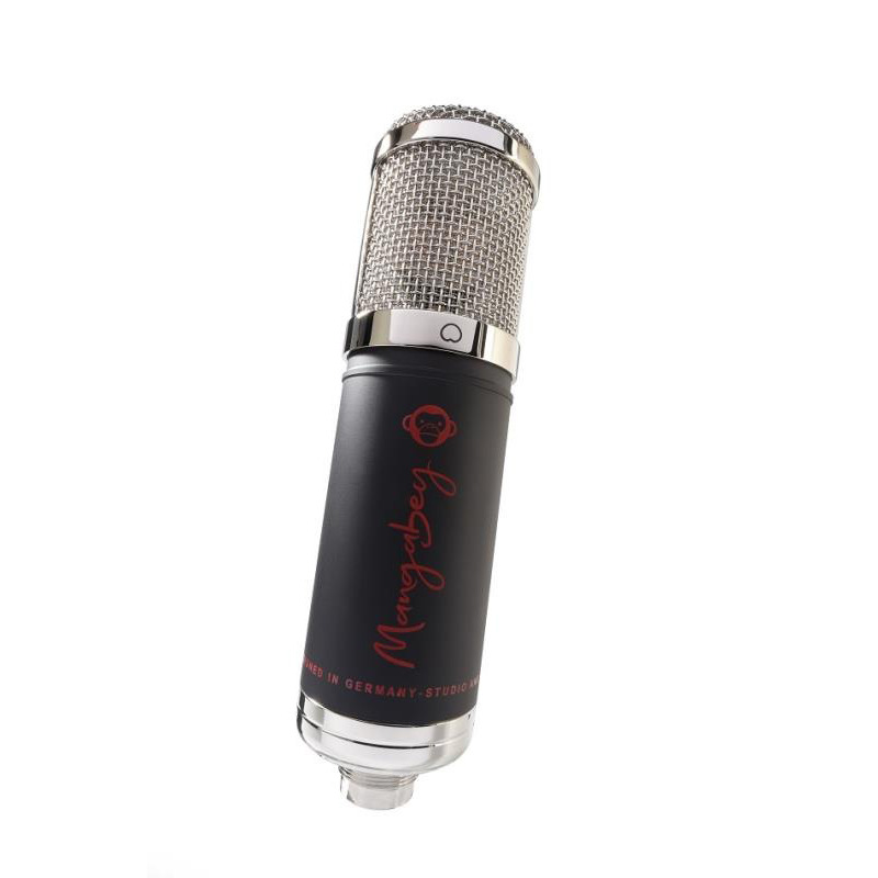 Monkey Banana Mangabey black – ламповый конденсаторный студийный микрофон с большой мембраной, предназначенный для студийной записи вокала или гитары. Также подойдет для подкастинга и мобильной записи. Используемая лампа 12AX7, собранная вручную, обеспечивает теплый, насыщенный звук. Установлен конденсаторный капсюль диаметром 34 мм. Рабочие частоты – от 20 до 20 000 Гц. Mangabey white может выдерживать до 135 дБ звукового давления. Микрофон предлагает девять направленностей, включая круг, кардиоиду и восьмерку, а также шесть промежуточных видов. Выходной импеданс находится на уровне 100 Ом, а чувствительность составляет -34 дБ. В комплект входит блок питания, держатель «паук», 7-контактный соединительный кабель и чехол.