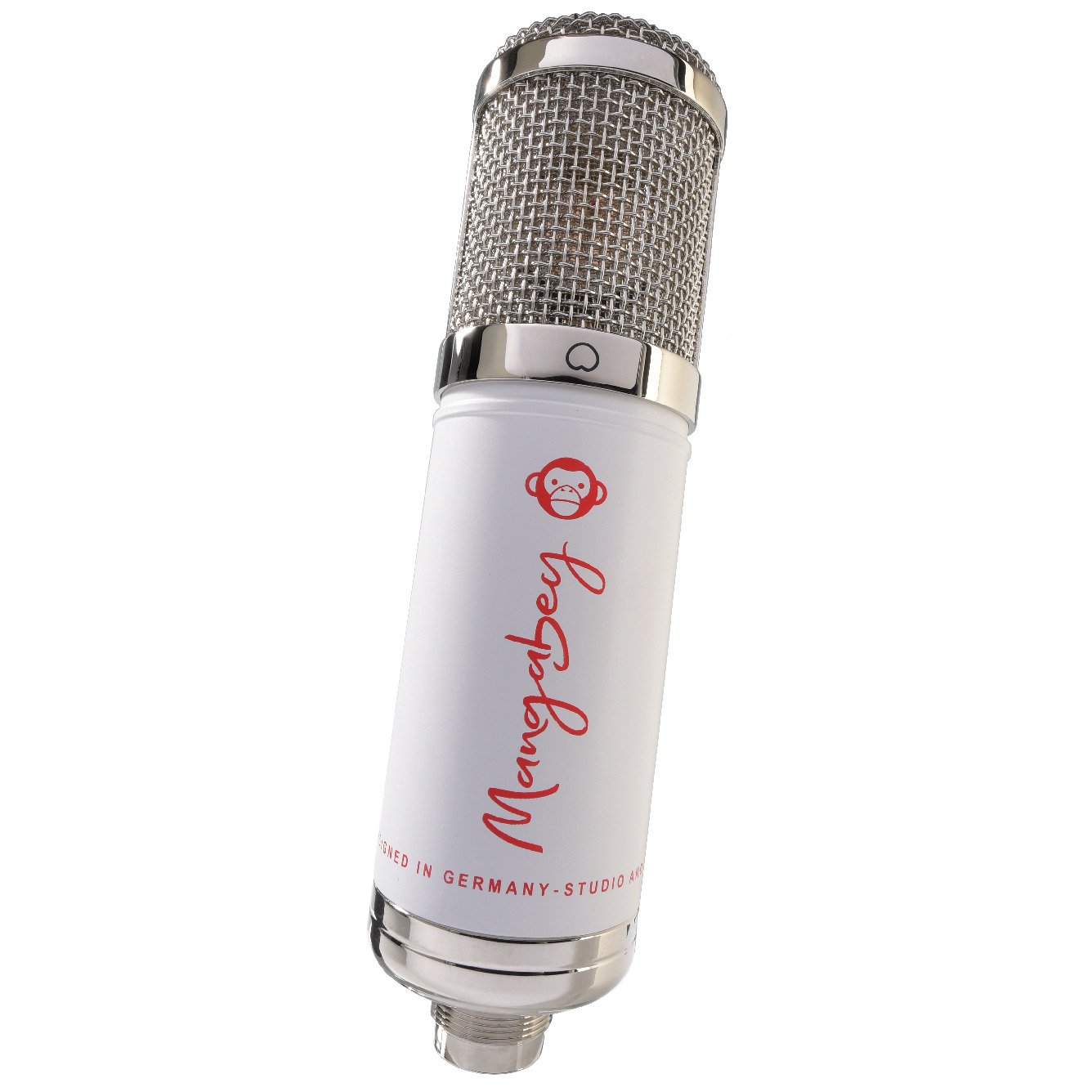 Monkey Banana Mangabey white – ламповый конденсаторный студийный микрофон с большой мембраной, предназначенный для студийной записи вокала или гитары. Также подойдет для подкастинга и мобильной записи. Используемая лампа 12AX7, собранная вручную, обеспечивает теплый, насыщенный звук. Установлен конденсаторный капсюль диаметром 34 мм. Рабочие частоты – от 20 до 20 000 Гц. Mangabey white может выдерживать до 135 дБ звукового давления. Микрофон предлагает девять направленностей, включая круг, кардиоиду и восьмерку, а также шесть промежуточных видов. Выходной импеданс находится на уровне 100 Ом, а чувствительность составляет -34 дБ. В комплект входит блок питания, держатель «паук», 7-контактный соединительный кабель и чехол.