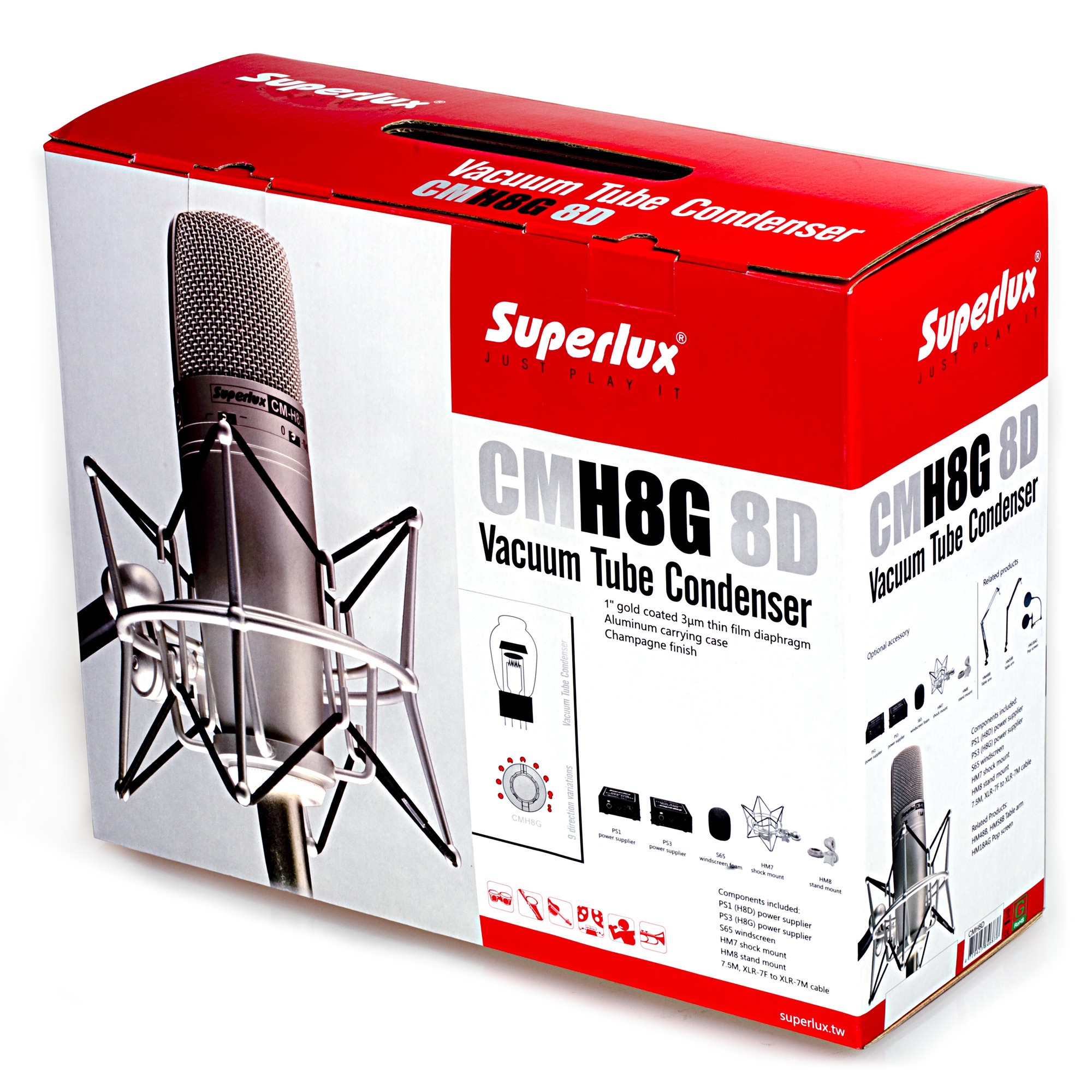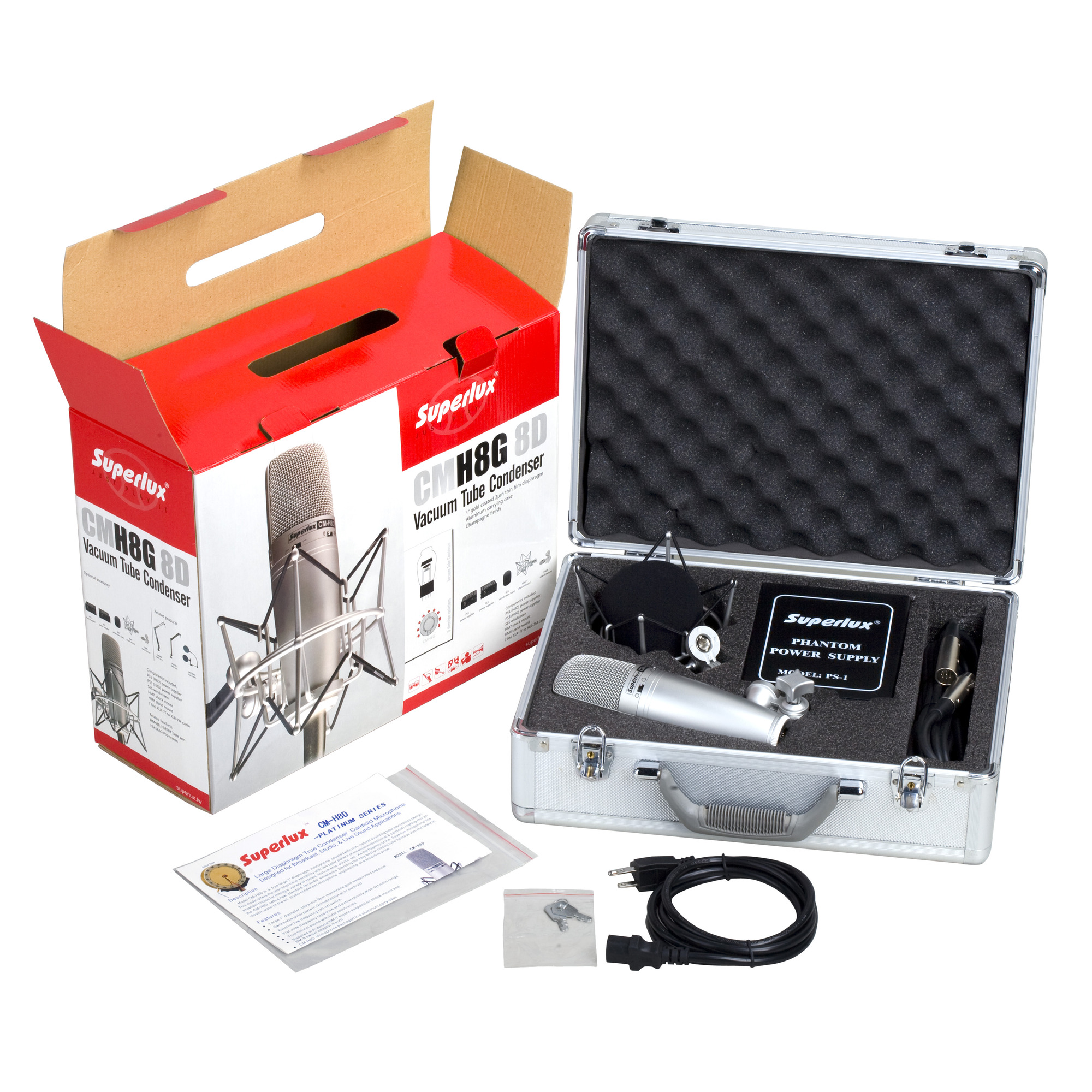 Superlux CM-H8D- ламповый конденсаторный микрофон с большой диафрагмой для записи вокала и акустических инструментов. Модель оснащена ламповым усилителем с уникальной конструкцией, который придает звучанию исключительно теплый и точный характер. Этот микрофон как нельзя лучше подойдет для студийного использования.