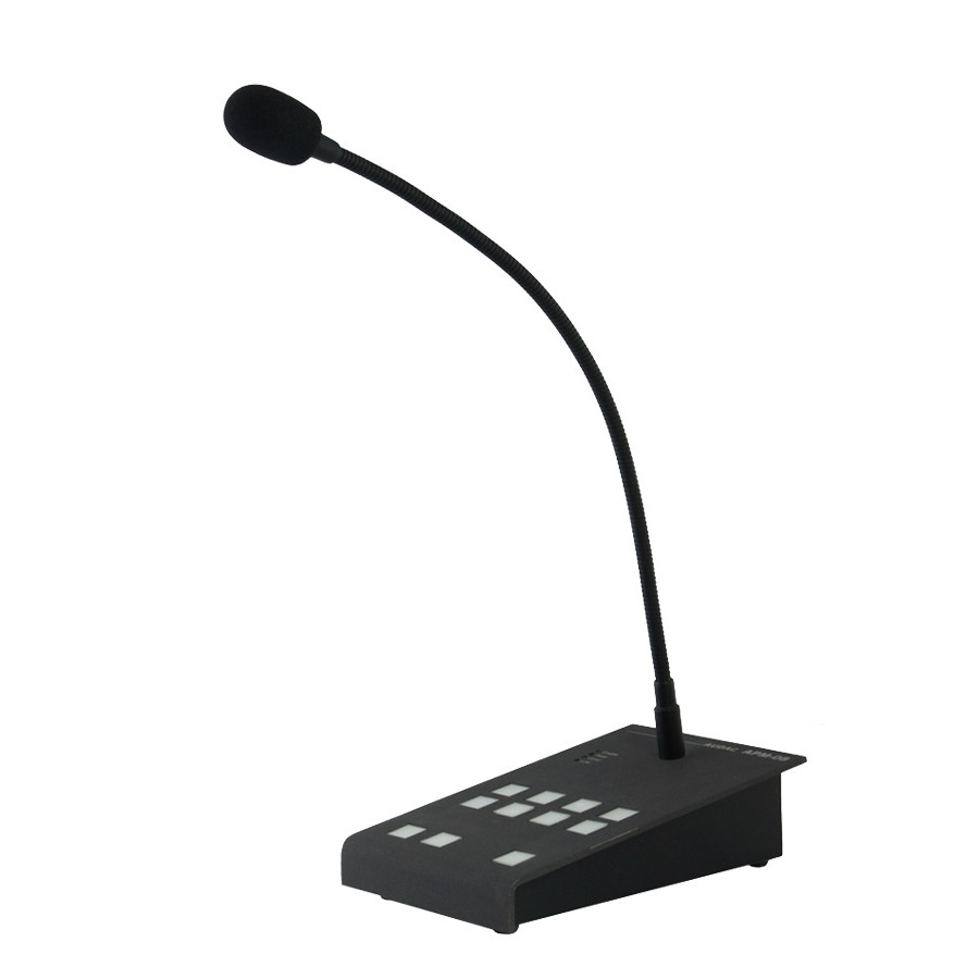 APM108MK2 – цифровой пейджинговый микрофон для 8 зон, оснащенный конденсаторным электретным капсюлем с кардиоидной диаграммой направленности. Микрофон смонтирован на гибком кронштейне типа «гусиная шея». Корпус выполнен из стали и оснащен кнопками со светодиодной подсветкой. Выбор зоны осуществляется с помощью кнопок на верхней панели. С помощью встроенного компрессора/лимитера уровень выходного сигнала микрофона поддерживается постоянным. Статус воспроизводимого сигнала отображается на передней панели. Программное обеспечение (входит в комплект) позволяет настраивать требуемую конфигурацию. Пейджинговые микрофоны серии APM позволяют передавать аудио сигнал в аналоговой и цифровой форме. Благодаря модульной структуре, систему можно расширять с помощью дополнительных модулей. Связь между несколькими APM осуществляется по шине RS-485, по которой также подается необходимое напряжение питания. Кабельная коммутация осуществляется витой парой CAT5 с разъемами RJ45. При использовании нескольких пейджинговых микрофонов в одной системе необходимо использовать дополнительные сплиттеры ARJ03P.