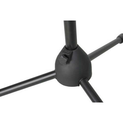 Прямая микрофонная стойка с основанием в виде треноги и зажимом одной рукой имеет достаточно прочную конструкцию. Стойка характеризуется складной треногой и имеет съемные красные предохранители на ножках. Стойка подходит фактически ко всем держателям микрофона. В комплект включен держатель для кабеля. Складывающаяся тренога, мягкий одной рукой зажим для надежной фиксации высоты, поддерживает все держатели.