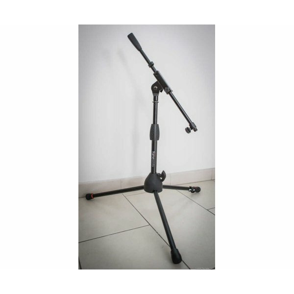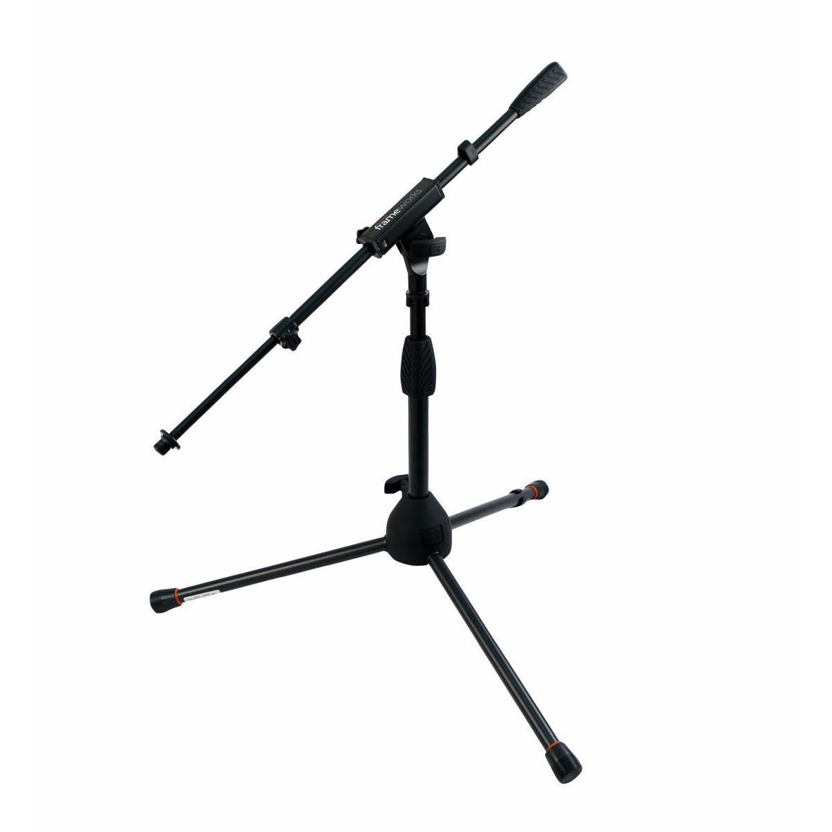 Короткая микрофонная стойка с телескопическим журавлем для бас барабанов и комбоусилителей. Стойка характеризуется прочной конструкцией, складной треногой и съемными красными предохранителями. Стойка подходит фактически ко всем держателям микрофона. В комплект включен держатель для кабеля. Микрофонная стойка с треногой и телескопическим журавлем, складывающаяся тренога, мягкий поворотный зажим для надежной фиксации высоты, поддерживает все держатели.