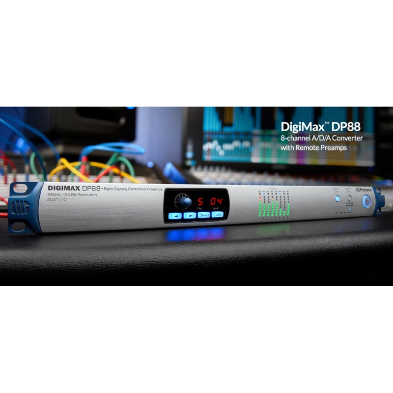 PreSonus DigiMax DP88 - 8-канальный микрофонный предусилитель и цифровой преобразователь. По утверждению производителя, данная модель станет идеальным дополнением для любого звукового интерфейса, оборудованного входами и выходами ADAT, включая PreSonus Studio 192. Также отмечается, что новинка обеспечивает профессиональное качество звука, имеет гибкие возможности подключения и набор функций, ранее недоступный в этом классе.
