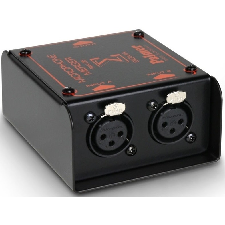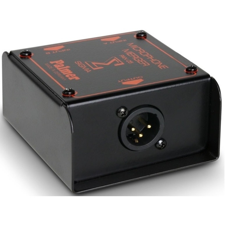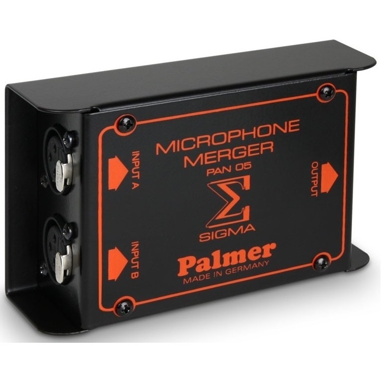Микрофонный сумматор Palmer PAN05 - позволяет соединить сигналы с двух микрофонов в один, который вы сможете пустить на консоль. Необходим при решении проблемы нехватки каналов на микшерном пульте. PAN05 позволяет фантомному питанию "проходить", что пригодится при использовании конденсаторных микрофонов. Однако, из-за разницы в звуке и уровне сигнала, смешивание динамического и конденсаторного микрофона должно избегаться. Лучший результат использования устройства достигается при использовании двух одинаковых микрофонов.