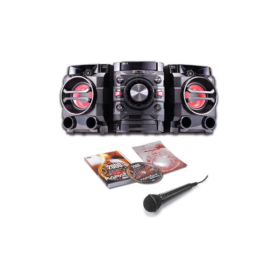 LG DM5360K - караоке-минисистема с DVD и мощностью 200 Вт. Система LG DM5360K - это современный музыкальный "комбайн". Она сочетает в себе возможности караоке с функцией оценки исполненной композиции, воспроизведения видео на внешний источник посредством HDMI-кабеля, а также воспроизведения медиаконтента с мобильных устройств через Bluetooth. Мощная аудиосистема, состоящая из пары двухполосных колонок, выдающая 230 Вт звука, яркий дисплей с белым светом.