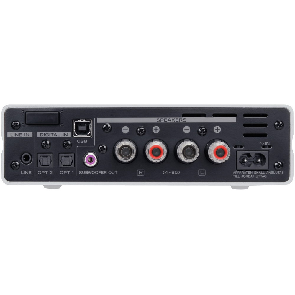 AI-101DA позволяет принимать потоковые файлы высокого разрешения с компьютера, а также беспроводное аудио высокого качества со смартфонов через Bluetooth и кодек aptX. Кроме аудио входа USB и приемника Bluetooth, AI-101DA оснащен также парой оптических цифровых входов и одним аналоговым входом для традиционных аудио плееров – стационарных CD-плееров или портативных моделей. О принадлежности микросистемы к новому поколению говорит не только универсальный набор входов, но и новейшая DSP-технология “HR Loudness”, призванная максимизировать качество звука при совместной работе AI-101DA и LS-101. Компактный корпус AI-101DA допускает как горизонтальное, так и вертикальное размещение, чтобы легко расположить его рядом с телевизором или STB-приставкой, а фирменные ручки на передней панели дают ощущение принадлежности к профессиональной аппаратуре TEAC.