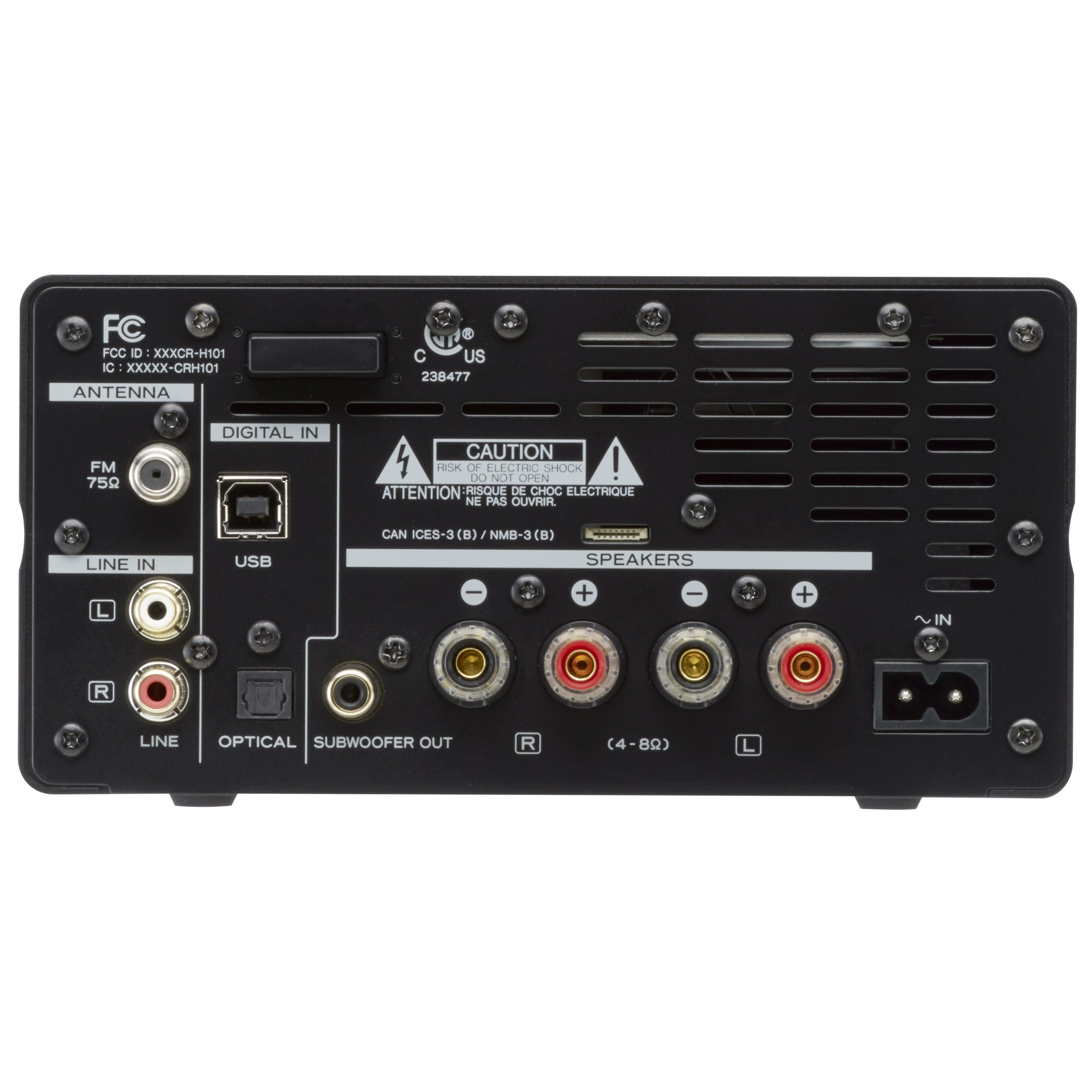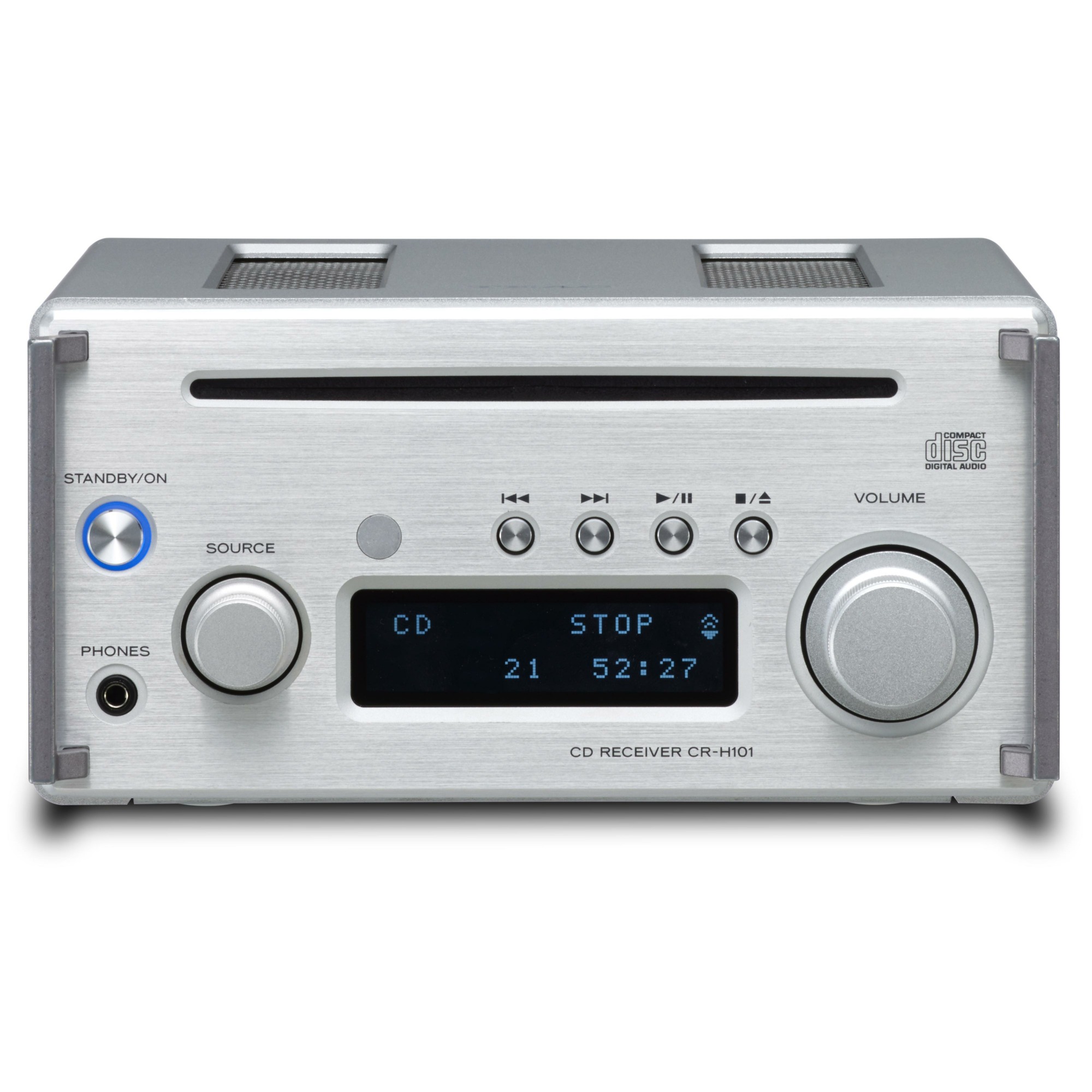 Для ЦАП использована микросхема Burr Brown PCM1795, отличающаяся широким динамическим диапазоном и малыми искажениями, часто используемая в цифро-аналоговых конвертерах класса high-end. Ранее такая же микросхема была установлена в ЦАП UD-501 и UD-301. Усилитель мощности TPA3118 от Texas Instruments работает в высокоэффективном классе D и выдает 2 х 26 Вт на 4 Ом. Кроме пары колонок типа LS-101HR, специально сконструированных для CR-H101, усилитель с успехом может работать и с полочными АС более высокого класса.