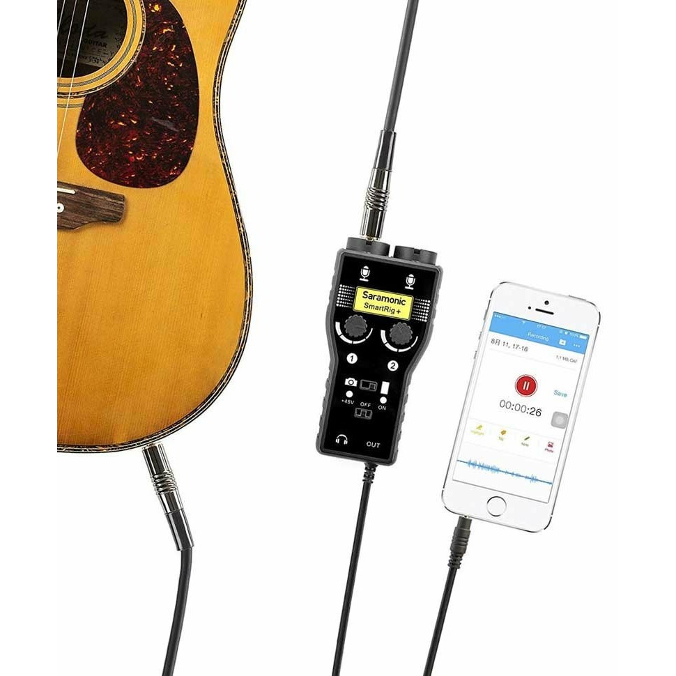 Двухканальный аудиомикшер Saramonic SmartRig+ — это усовершенствованная версия популярного аудио-устройства SmartRig. Звуковой адаптер Sarimonic SmartRig+ — это простое решение для подключения любых профессиональных микрофонов к iPhone, iPod touch или iPad и устройствам Android