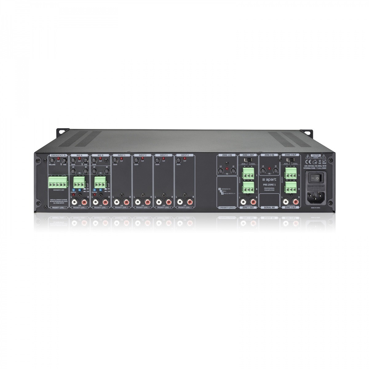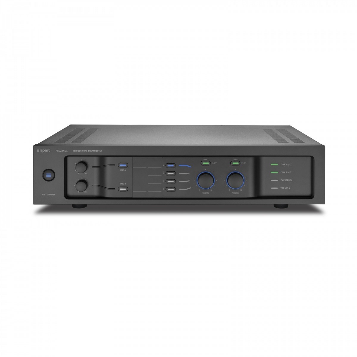 APART PREZONE1 многофункциональный стерео предусилитель, который позволяет вам управлять громкостью в 2 стерео зонах. Микшер имеет 4 линейных и 2 микрофонных входа и позволяет микшировать оба микрофонных канала с одним из 4х линейных. Дизайн выполнен в стиле новых усилителей серии МА, зарекомендовавший себя как простой в использовании и интуитивно понятный даже для человека далекого от понимания техники. Задняя панель так же выполнена по тому же принципу серии МА, что позволяет легко разобраться что и куда подключать. PREZONE1 имеет более высокое соотношение сигнал/шум, он прост в использовании, логический дизайн и универсальные функции делают его пригодным практически для любого профессионального аудио приложения.