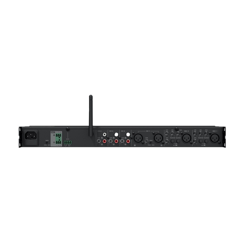 Особенности | 6 стереоканалов, 2 микрофонных входа с фантомным питанием, регулировка громкости и тембра по 2 полосам, регулировка громкости для каждого входа. Регулировка тембра по 3 полосам для микрофонных входов, имеется режим приоритета микрофонного сигнала (talk over) для трансляции срочных сообщений. Балансные вход и выход, три небалансных выхода. Возможность подключения источников через разъем mJack 3,5 мм на передней панели. Встроенный Bluetooth-приемник. Удаленное отключение звука замыканием контактов |
