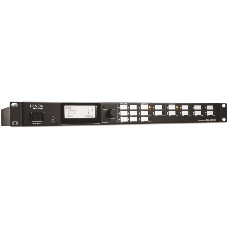 Denon DN-508MX -отличный рэковый 8-зонный микшер. Ассортимент продукции компании Denon Professional пополнился 8-зонным микшером DN-508MX. Устройство выполнено в компактном корпусе и отличается простотой в эксплуатации. Новинка может использоваться в ресторанах, гостиницах, музеях, ночных клубах, спортивных барах и крупных корпоративных офисах. DN-508MX позволяет управлять сигналами с 8 источников различных типов, отличается простотой в использовании и надежностью. Новый микшер представляет собой универсальное профессиональное решение для обработки и маршрутизации аудиосигналов в многозонных инсталляциях. DN-508MX найдет применение в ресторанах, гостиницах, музеях, ночных клубах, барах и офисах.