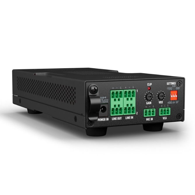 Он чрезвычайно прост в использовании благодаря удобной передней панели с двумя регуляторами громкости, а также светодиодами сигнала и клиппирования.