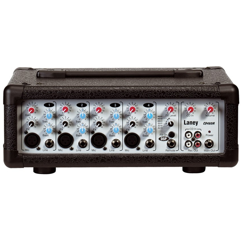 Микшер-усилитель Laney CD480M обеспечит вас всем, чего вы можете пожелать от небольшой установки. CD480M обеспечивает выход 80 Ватт, 4 канала, цифровой процессор с возможностью педального переключения. Каждый канал имеет линейный и микрофонный входы, 2-полосный эквалайзер, регулировки мощности и FX. В мастер секции также имеется вход tape/CD, основной выход и общий уровень FX. CD480M представляет собой идеальный небольшой усилитель в сочетании с парой CT10 или CT12.
