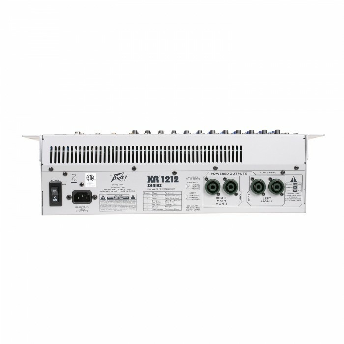 Peavey XR 1212 - это микшер со встроенным усилителем. Имеет 12 каналов с XLR-входами для микрофона, линейные входы на каналах 11 и 12, 60-мм фэйдеры, 4-полосный эквалайзер с технологией Mid-Morph, 2 выхода на мониторы, 1 выход на EFX и кнопки PFL и Mute. XR 1212 оборудован двумя 600-ваттными (при импедансе 4 Ом) усилителями класса D, 2 комбо-коннекторами (Speakon и TRS) на каждый канал усиления и цифровыми эффектами с педальным выключателем. Автоматический эквалайзер (с выделенным RTA-входом) оснащён системой подавления обратной связи Feedback Ferret и цифровым графическим эквалайзером для каждого усилителя. 5 режимов усиления, включая полностью активный кроссовер сабвуфера. Предусмотрена возможность рэковой установки.