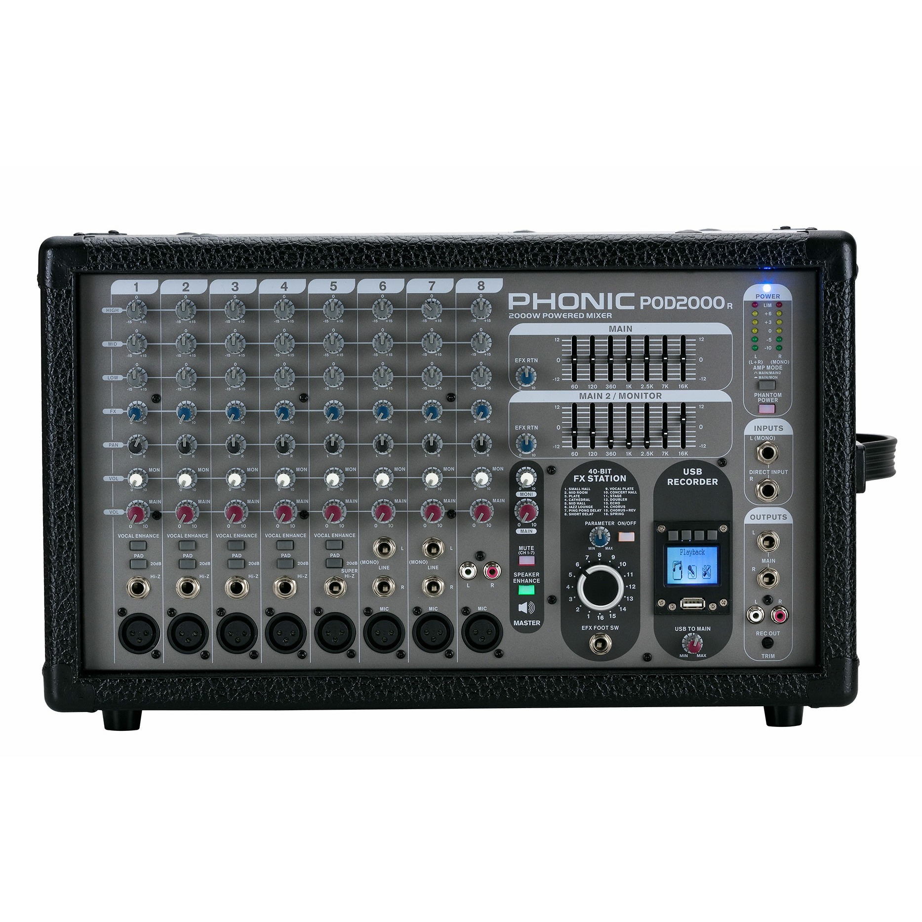 Phonic POWERPOD 2000R - Активный 10-ти канальный микшерный пульт, 2х1000 Вт/4 Ом, процессор эффектов, 2хAUX In, 1xEFX Out, 1xMonitor Out, встроеный USB проигрыватель/рекордер