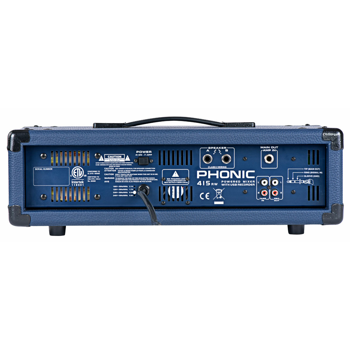Phonic Powerpod 415RW Активный 4-х канальный микшерный пульт, 4 канала XLR & Jack, мощность встроенного усилителя 150Вт @ 8Ом, 2-полосный эквалайзер + цифровой Delay с регулируемым временем задержки, габариты 440 x 136 x 214 мм, вес 7.4 кг, встроенный usb проигрыватель/рекордер c меню на русском языке ,встроенный Bluetooth для воспроизведения потокового аудио с мобильных устройств.