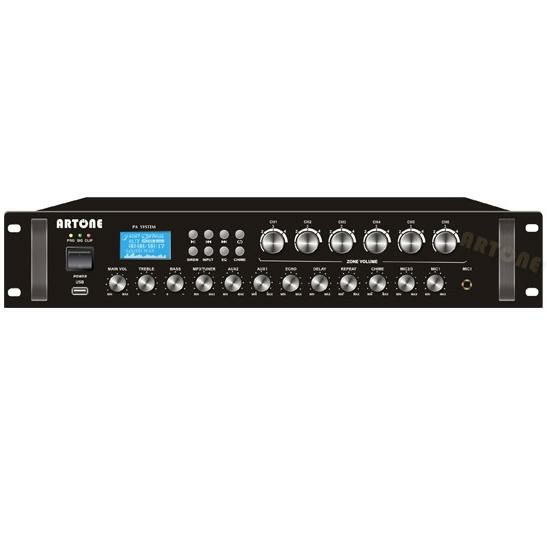 Artone PMS-A6360A имеет встроенные источники, такие как USB, FM Tuner. Выходы на акустику представлены 6-ю независимыми зонами (70 В, 100 В), Частотный диапазон воспроизводимого звука составляет 90 Гц - 19 кГц (±1Дб). Усилитель снабжен встроенной защитой от перегрева, перегрузок и короткого замыкания.