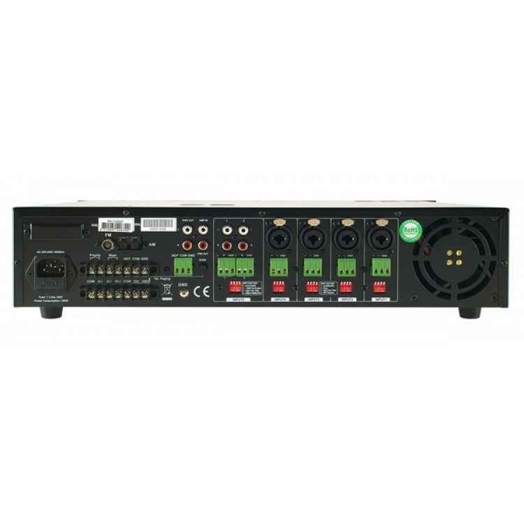 | Входные разъемы | 4x MIC/LINE сбалансированные, 2x AUX переключаемые на задней панели, 1x TELEPHONE/EMERGENCY, 1x AMP IN (обычно связан с PRE OUT) |