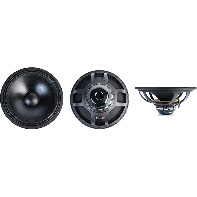 CVGaudio 15MN458C - профессиональная динамическая головка СЧ/НЧ диапазона. Номинальная мощностью динамика 450Вт AES (программная мощность – 900W). Размерность - 15" (380мм). Диффузор изготавливается из профессиональной штампованной акустической бумаги и пропитан специальным защитным масляным составом, что позволяет использовать динамик не только внутри помещения, но и для уличных инсталляций (при условии, что корпус акустической системы также будет соответствовать необходимому уровню защиты от влаги, помимо этого необходимо располагать акустическую систему под навесом). Диффузор установлен на синусный подвес из ткани (polycotton) c пропиткой и двумя диаметральными волнами, уменьшающими уровень искажений и придающими подвесу необходимую жесткость и линейность при движении в процессе работы. Используется 3-х дюймовая звуковая катушка с алюминиевой намоткой. Длина намотки катушки – 17мм, магнитный зазор – 10мм. Используется неодимовый магнит в виде кольца с дополнительными магнитными лепестками, располагающимися по всему диаметру для обеспечения равномерности магнитного поля. Конструктивно динамик выполнен на литой алюминиевой раме, что обеспечивает стабильность его акустических параметров. Материал центрирующей шайбы – Glass Fibre (стекловолокно). Динамик обладаем очень высокой чувствительностью 99,4 дБ. Отлично работает в паре с ВЧ драйвером DR 810 нагруженным на рупор RDP 159075. Отличный вариант для создания громкой полно-диапазонной 15-ти дюймовой колонки. В целом данная модель рекомендуется для установки в качественные 2-х и 3-х полосные акустические системы. Применение легкого неодимового магнита обеспечивает невысокий вес акустической системы созданной на базе этой головки, что очень важно для турового и прокатного использования. Рекомендованное акустическое оформление для CVGaudio 15MN458C – фазоинвертор, динамик можно использовать для рупорных акустических систем.