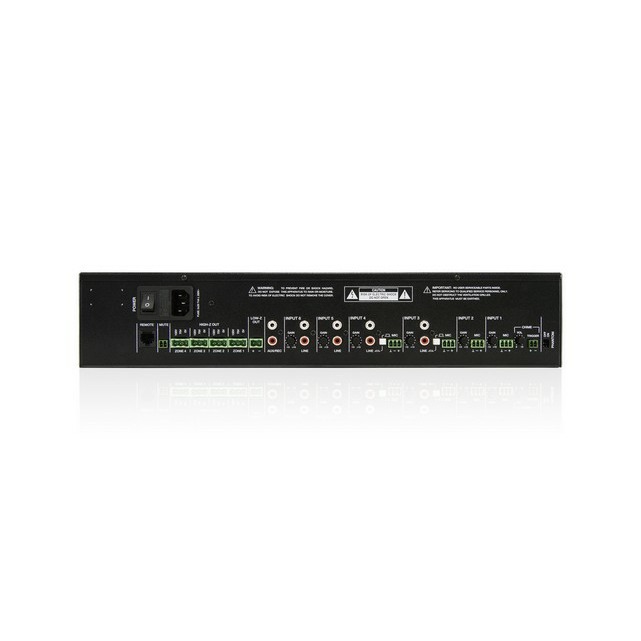 Он оснащен монофоническим выходом мощностью 240 Вт, который поддерживает линии громкоговорителей низкого (4 Ом) и высокого импеданса (70 В, 100 В), с независимыми переключателями ВКЛ / ВЫКЛ 4-ZONE (ZONE 1, ZONE 2, ZONE 3 и ZONE 4). Он также включает в себя систему приоритета звука (голосовые сообщения, аварийные ситуации и т. Д.), Доступную на 4 входах, функцию пейджера и встроенного звонка (совместимую с пейджинговыми микрофонами в 1 зоне), фантомное питание, порт дистанционного управления (совместим со стеновыми панелями серии WPm), Выход AUX / REC, 2-полосный тональный контроль, автоматический режим ожидания и порт MUTE. Совместим с аксессуаром для монтажа в стойку 2UHRMKIT, чтобы установить его в стандартные 19 ”стойки.