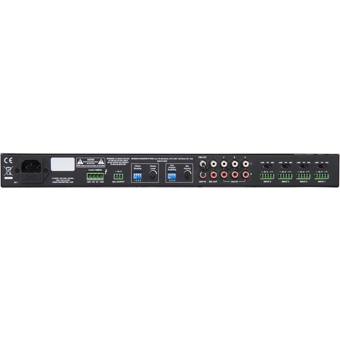 | Тип | четырехканальный микшер и усилитель мощности 160 Вт – 4 Ом или 70/100 В |