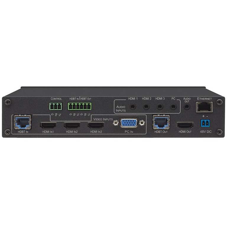 - Отдельные входы и выход аналогового стерео, поддержка вложенного аудио для HDMI/HDBT с независимой регулировкой входного уровня