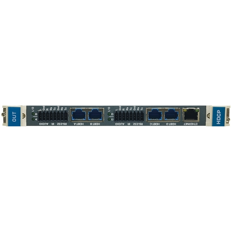 DTAxr-OUT4-F32 (HDBTA-OUT4-F32)/STANDALONE – плата c 4-мя выходами HDBaseT, поддержка разрешения до 4K60 (при YUV 4:2:0), устанавливается в шасси модульного матричного коммутатора Kramer VS-3232D. Дальность передачи сигналов 1080p/60 до 180 метров, сигналов 2K – до 130 метров, а сигналов 4K – до 100 метров. Имеются эмбеддеры/деэмбеддеры небалансного аудио, 4 порта RS-232, 4 порта ИК и порт Ethernet.
