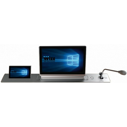 Моторизированный выдвижной монитор серии Brio Conference диагональю 15,6" c доп. 7" монитором, лифтом для микрофона, регулируемым углом наклона 0-30° и сенсорным экраном