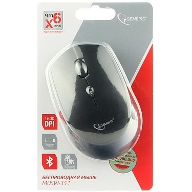 Беспроводная мышь Gembird MUSW-351 Bluetooth со встроенным аккумулятором, заряжается по USB-кабелю, как смартфон.