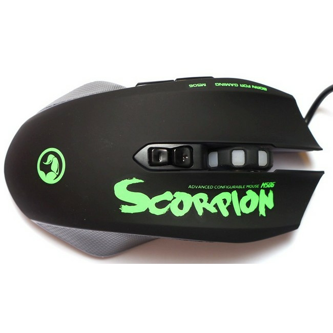 Игровая мышь MARVO M506GN Компьютерный манипулятор M506GN от MARVO порадует фирменной надежностью и удобством эксплуатации. Мышь подключается через USB-разъем, что обеспечивает молниеносную передачу команд. Сенсор с настраиваемой чувствительностью 3200 dpi. Манипулятор оснащен 7-ю функциональными кнопками, особенно радует для быстрого огня клавиша “двойного клика”. Подсветка имеет 4 режима -придает M506GN выразительного акцента. Манипулятор удобно ложится в руку, корпус изготовлен из матового пластика.