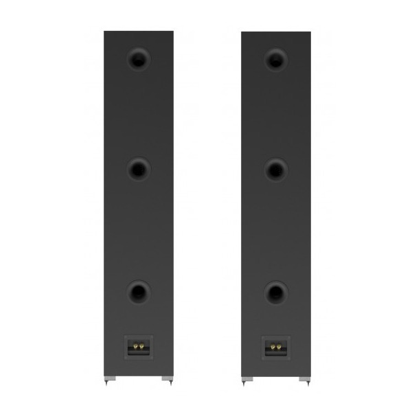 Колонки выполнены в корпусах из калиброванного ДВП, усиленных внутренними стяжками. В то же время весь внутренний объем АС используется акустической нагрузки динамиков, а не только его часть, что положительно сказалось на качестве звучания ELAC Debut F6. На заднюю панель колонки выведены отверстия фазоинверторов (отдельного для каждого динамика), а также пара позолоченных винтовых клемм для подключения к усилителю. Колонка устанавливается на опоры, в которые могут быть вкручены шипы для лучшей механической развязки от поверхности пола. При среднем показатели чувствительности и стабильному импедансу ELAC Debut F6 будут хорошо сочетаться со многими моделями усилителей и AV-ресиверов, а по характеры звука они отлично подойдут для использования в домашнем кинотеатре, а также для прослушивания музыки практически любых жанров.