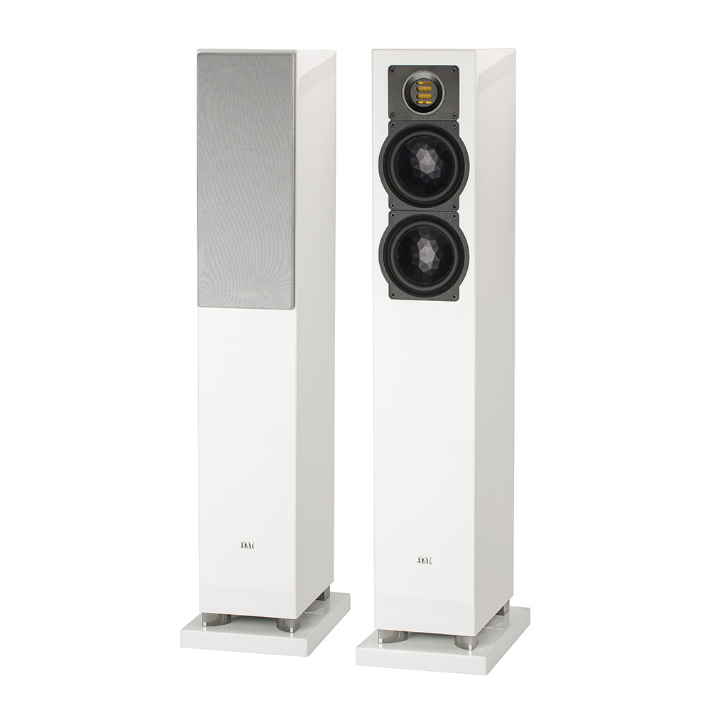 ELAC FS 247.3 оснащены двумя НЧ-динамиками диаметром 150 мм с фирменными диффузорами AS-XR, обладающими устойчивостью к паразитным вибрациям. Диффузоры смонтированы на эластичном подвесе и соединены со звуковой катушкой, помещенной в поле мощной магнитной системы, способны совершать быстрые линейные перемещения с большой амплитудой. Басовики включены в конфигурации 1,5 полосы с частотой раздела между ними 500 Гц и нагружены на фазоинвертор.