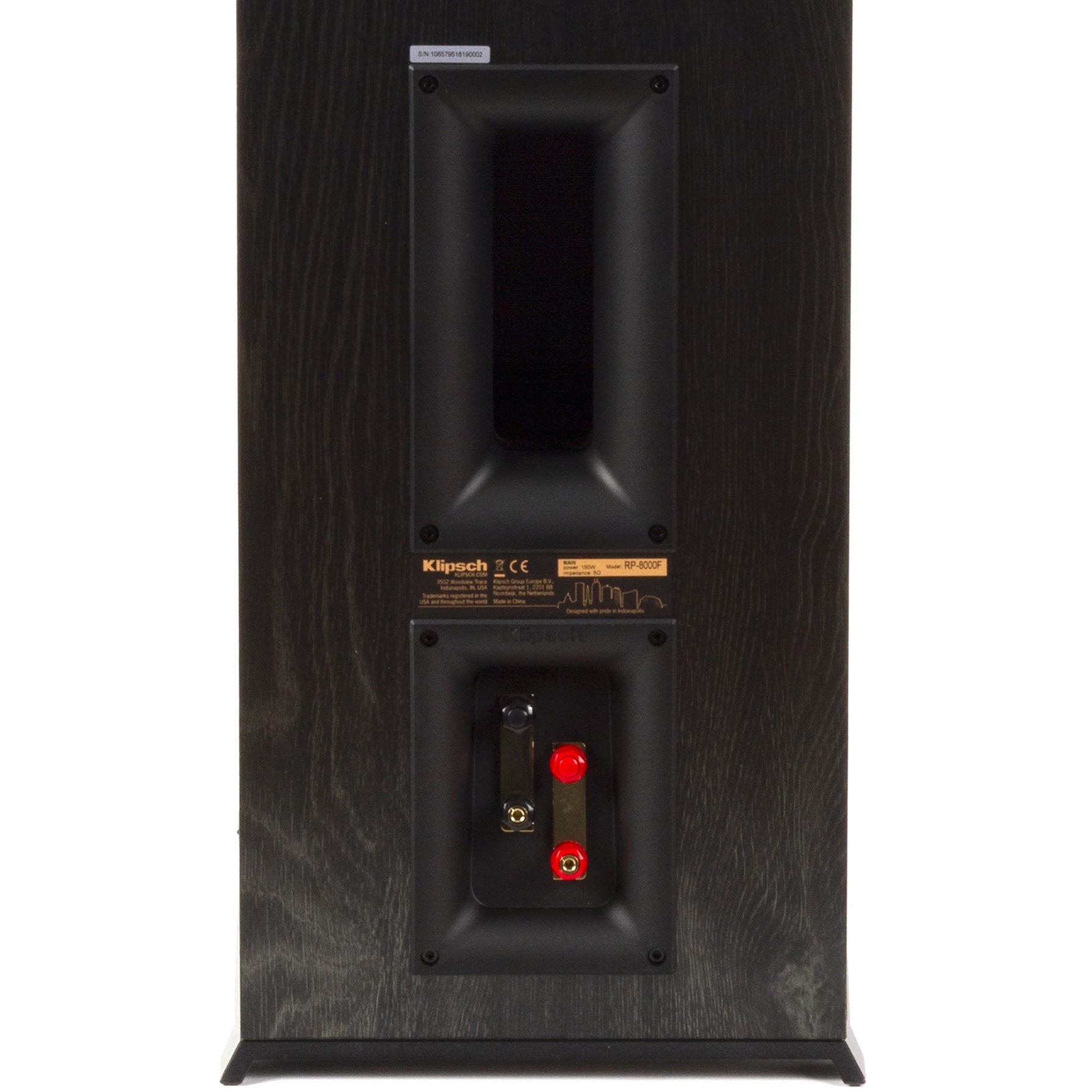 Корпус флагмана Klipsch RP-8000F выполнен из MDF и отличается хорошим демпфированием. Его основание устанавливается на слегка наклоненную назад платформу с литыми алюминиевыми ножками. Доступно двухпроводное подключение благодаря наличию двух пар винтовых клемм. Колонка выпускается в нескольких видах отделки с применением виниловой пленки или рояльного лака.