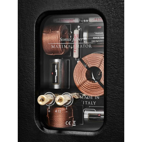 Динамики взяты от Electa Amator III. Это 28-мм твитер с фирменной технологией DAD и неодимовым магнитом, а также 180-мм СЧ/НЧ-динамик с диффузором из целлюлозы и натуральных волокон. Главное отличие модели от других — в кроссовере: в Maxima Amator использована схема IFF (Interactive Fusion Filtering). В основании акустики использован натуральный мрамор Сен-Лоран.