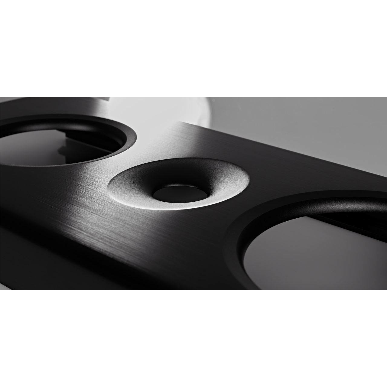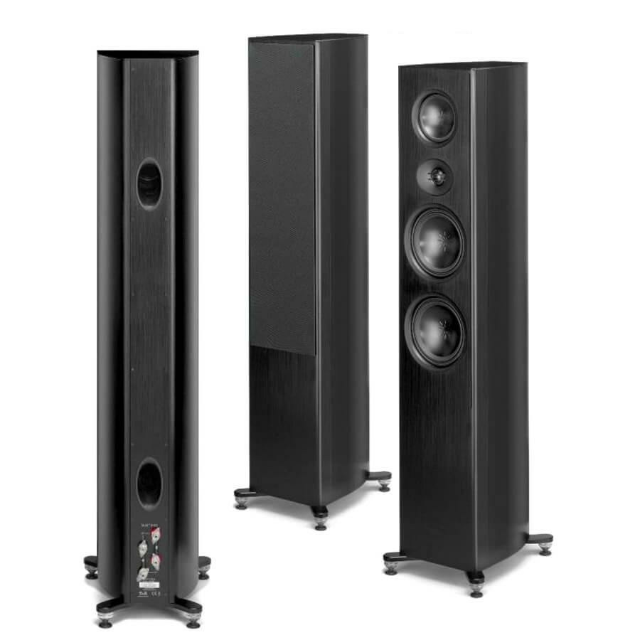 S 300 органично впишутся в интерьер с элементами хай-тек и не займут много места (их ширина — всего 21 см, а высота — 105 см). Использование алюминия в качестве основного материала открыло дополнительную степень свободы в выборе форм акустических систем, а также типе отделок. Благодаря современным методам проектирования и новому сверхточному оборудованию производителю удалось создать чрезвычайно жесткий корпус с большим внутренним объемом при достаточно компактном размере самих колонок. За счет этого в S 300 удалось добиться по-настоящему глубокого баса даже на очень низких частотах. В то же время кабинеты TALIS обладают отличными демпфирующими свойствами и эффективно гасят резонансные шлейфы. Лицевая панель идеально гладкая, она была спроектирована так, чтобы колонки обеспечивали ровную диаграмму направленности по всему диапазону частот. Это доказывают феноменально высокие результаты измерений. Новые динамики являются ключом к невероятной производительности TALIS S 300. Два из них (2 x 170 мм) синхронно трудятся в НЧ-сегменте и выдают мощный бас без искажений даже на самых высоких уровнях. При столь компактных габаритах нижняя граница заявлена от 25 Гц. СЧ-драйвер работает в пределах от 300 Гц до 2 000 Гц. Как утверждает производитель, СЧ-динамик воспроизводит голосовой диапазон живо, с реактивной динамикой и выдает большое количество деталей и нюансов. Высокочастотный драйвер выходит за пределы слышимых границ и дотягивается до отметки 30 000 Гц, обеспечивая слушателя воздушными переливчатыми верхами, точными и быстрыми, без каких-либо следов остроты или жесткости. Трехполосный кроссовер построен на отборных комплектующих, он с хирургической точностью разделяет звуковой спектр по заданным параметрам, строя восхитительно просторную звуковую сцену. Для хорошо артикулированного баса крайне необходимо, чтобы колонки были изолированы от пола. Зная об этом, инженеры T+A разработали для S 300 специальное железное основание, в которое на выбор можно вкрутить либо шипы из стали, либо силиконовые мягкие ножки, тем самым решив вопрос с ненужными вибрациями, а также с сохранностью напольного покрытия. Номинальная мощность TALIS S 300 — 200 Вт (270 Вт в пике). Cопротивление — 4 О