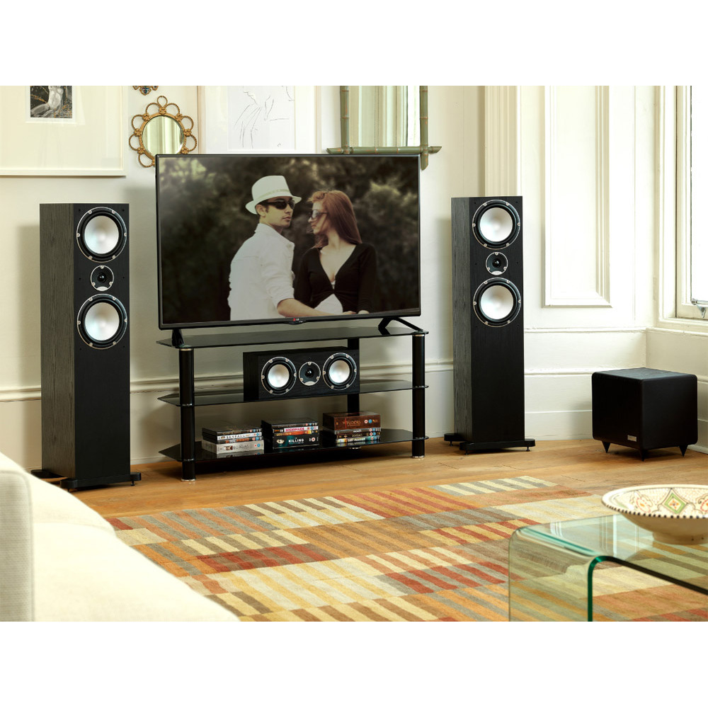 Единственная на сегодняшний день напольная модель в своей серии, Tannoy Mercury 7.4 обладает достаточно мощным и насыщенным звуком для полноценной работы даже в больших помещениях. При этом колонки нельзя назвать громоздкими – они имеют довольно стройный силуэт, что было достигнуто благодаря установке двух низкочастотных динамиков. Суммарная площадь их диффузоров в сочетании с точно настроенным фазоинвертром и обеспечили более чем убедительное воспроизведение басов и на музыке, и при просмотре кинофильмов, но передняя панель получилась довольно узкой. Для придания АС необходимой устойчивости она оснащена опорами, выходящими за пределы площади ее основания. Для лучшей виброразвязки колонки устанавливаются на шипы. Отделка корпуса АС может быть выполнена под светлый или темный дуб, или орех.