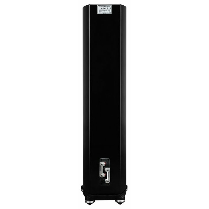 Wharfedale REVA-3 Black Piano - 2.5-х полосная напольная акустическая система с фазоинвертером. Формой корпусов колонки заметно отличаются от других моделей производителя. Передний щит, динамики на котором можно прикрыть аккуратной пылезащитной стенкой на увесистой магнитной раме, плавно "перетекает" в выгнутые боковые стенки, сходящиеся к зауженной задней панели. Каждая стенка представляет собой "композит" из древесно-волокнистых и древесно-стружечных плит. Чтобы добиться максимального затухания вибраций, в их структуру был введен дополнительный слой, а все панели усилены внутренними стяжками. Возможные призвуки от пары фазоинверторов, выведенных в нижнюю плоскость, гасит щелевой общий портал, который образуется между корпусом АС и мощной опорной плитой с внушительными конусными ножками.
