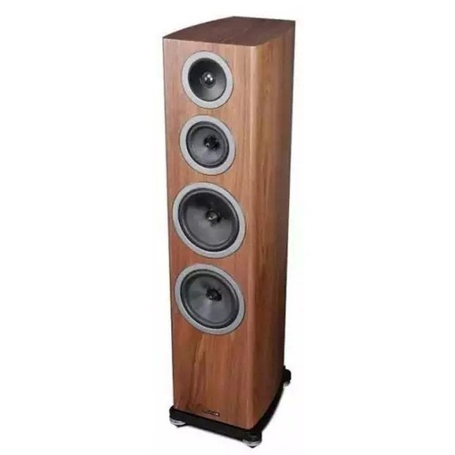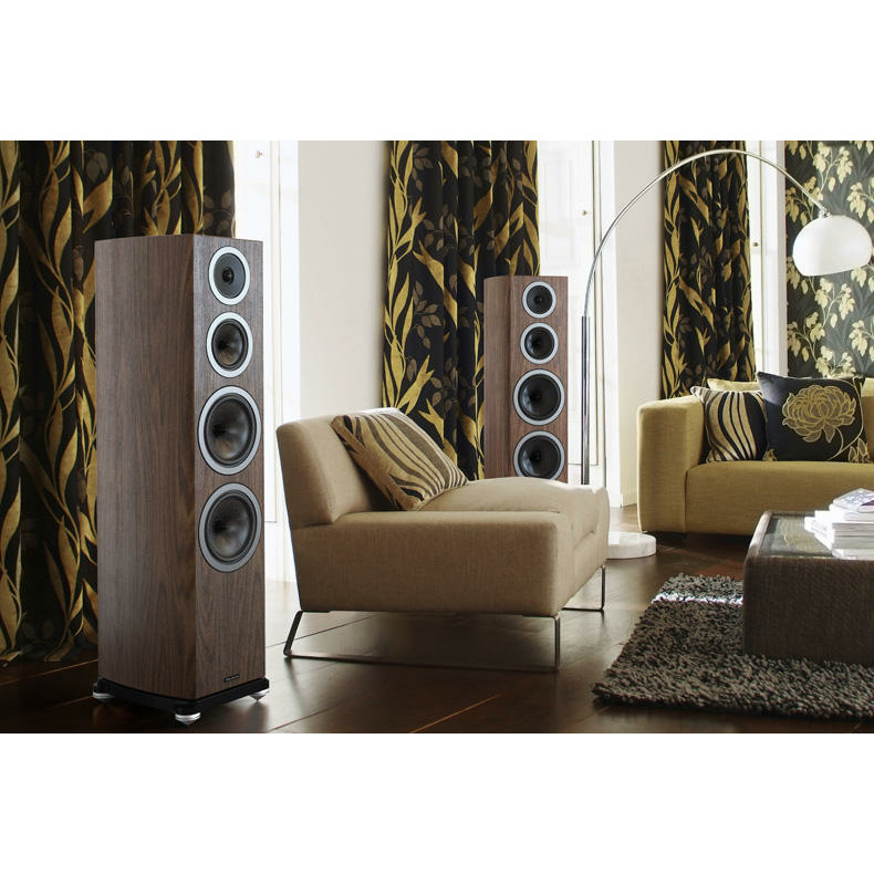 25-миллиметровый купольный твитер с неодимовым магнитом выполнен из очень тонкого текстиля и обработан какой-то необычной демпфирующей пропиткой, которая придает куполу красивый металлический отлив. Лёгкий излучатель слегка утоплен в конусный раструб, сравнимый по диаметру со 115-миллиметровой среднечастотной головкой. Последняя имеет каучуковый подвес, рассчитанный на очень большой ход, что вообще-то не характерно для СЧ-драйверов. Примечателен и сам диффузор. Он не из кевлара, как в других моделях марки, и даже не из углеткани, как можно подумать по внешнему виду, а из стекловолокна. По схожему принципу изготовлены и оба низкочастотника, причем компания подчеркивает, что все электромеханические параметры головок тщательно оптимизировались именно под особенности корпусов и выбранного акустического оформления, а не наоборот.