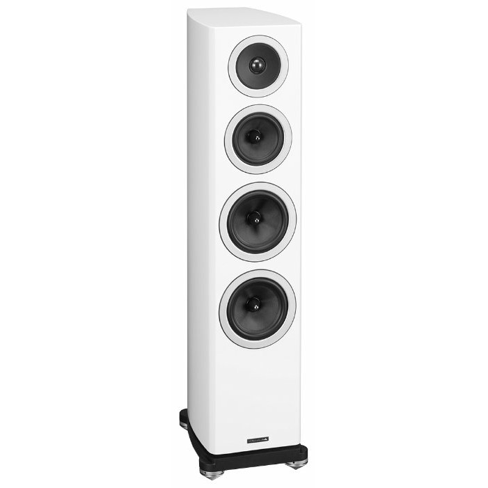 25-миллиметровый купольный твитер с неодимовым магнитом выполнен из очень тонкого текстиля и обработан какой-то необычной демпфирующей пропиткой, которая придает куполу красивый металлический отлив. Лёгкий излучатель слегка утоплен в конусный раструб, сравнимый по диаметру со 115-миллиметровой среднечастотной головкой. Последняя имеет каучуковый подвес, рассчитанный на очень большой ход, что вообще-то не характерно для СЧ-драйверов. Примечателен и сам диффузор. Он не из кевлара, как в других моделях марки, и даже не из углеткани, как можно подумать по внешнему виду, а из стекловолокна. По схожему принципу изготовлены и оба низкочастотника, причем компания подчеркивает, что все электромеханические параметры головок тщательно оптимизировались именно под особенности корпусов и выбранного акустического оформления, а не наоборот.