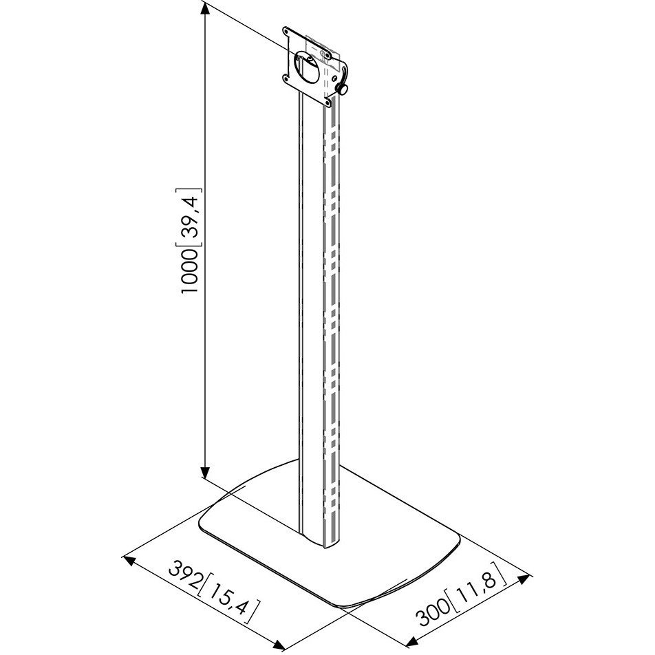 Кожух для планшета серии PTS может быть закреплен на напольном стенде при помощи винтов с внутренней стороны кожуха. Стенд состоит из стильной алюминиевой опоры со встроенной системой укладки кабелей и стальным основанием. Возможна регулировка угла наклона в пределах 0-90 градусов.